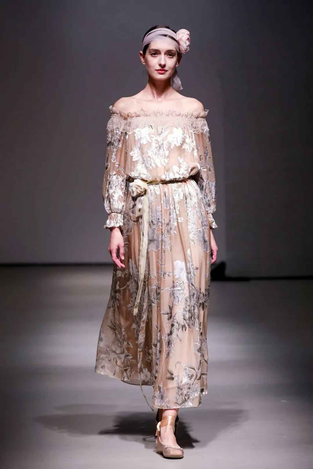 将诗意水墨、写意花卉、中国国画等元素精巧的搬上衣裙,采用渐染工艺和叠透设计,完美的展现东方留白含蓄的想像空间和灵动性,辅以羽毛、绣花、钉珠、手工花等精致的装饰,呈现出浓郁的东方艺术韵味,堪称“裙摆上的中国”。